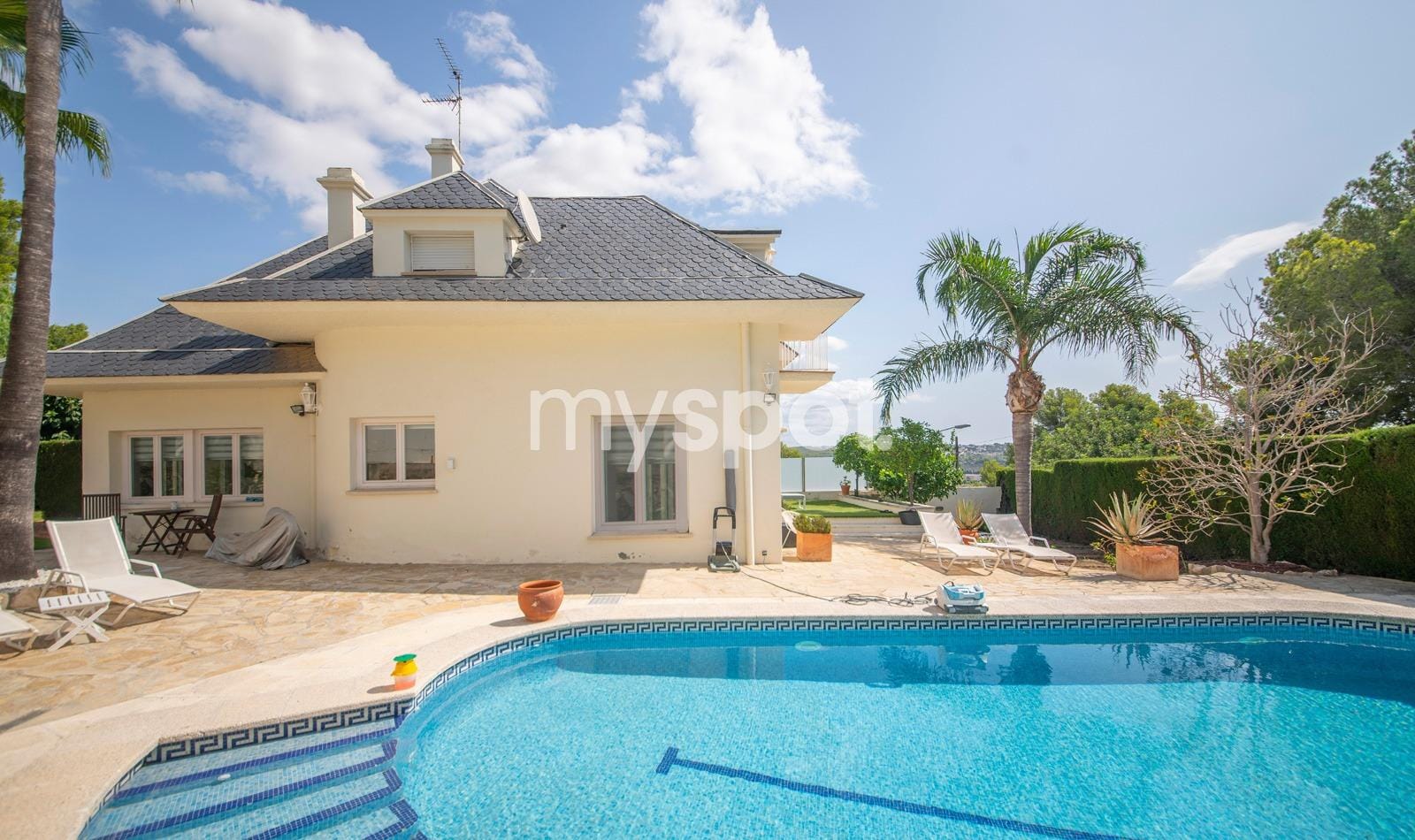 The house is located on a plot of 800 m², with a garden that includes a swimming pool, a 50 m² porch with barbecue, outdoor dining area and artificial grass, ideal for enjoying the Mediterranean climate. It also has a garage shed.