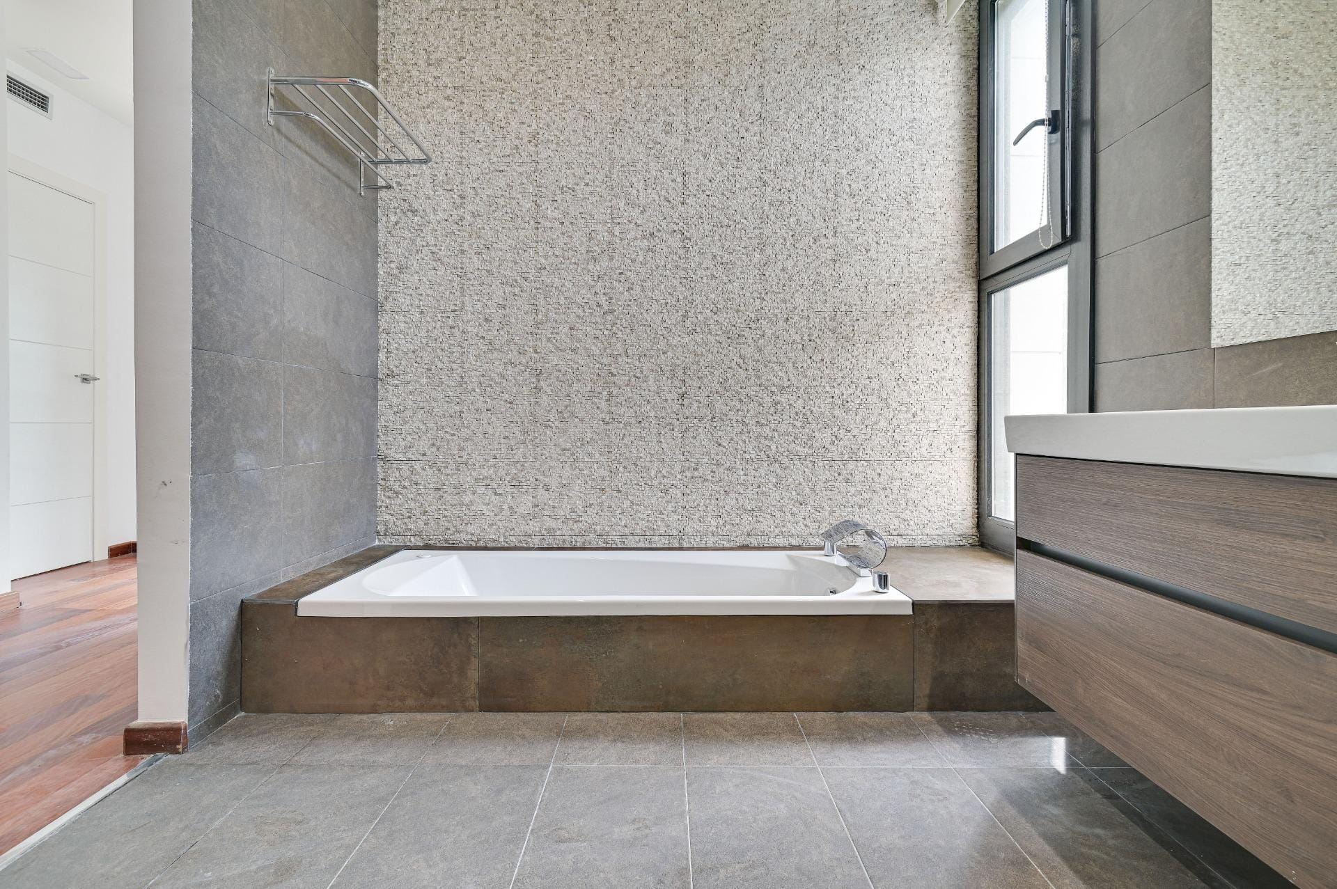 To the left we access the night area, where 2 double bedrooms with built-in wardrobes and a full bathroom with shower await us. A third presidential bedroom with dressing room and full bathroom (brand new hydromassage bathtub + shower).